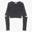 Let this grunge-style crop top be your go-to for all your looks. It's chic, comfortable, and perfect for every season. Long sleeves make it ideal for slightly cooler weather, whilst open elbows are ensuring you are not too hot on a sunny day!