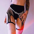 Leg Straps Mesh Panties Black Grunge in Black color for Alt Girls and Hot Goth Babes. Looks good for Crustpunk, Rave Outfits, Cybergoth, and Witch House Aesthetic.