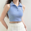 Buy Light Blue Crop Top A Letter Embroidery with Free Shipping in the United States and Worldwide! 5% OFF with 5OFFALL. FREE Aesthetic Gift for Customers.