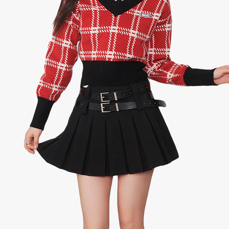 Buy Schoolgirl Aesthetic Double Belt Pleated Skirt with Free Shipping in the United States and Worldwide! 5% OFF with 5OFFALL. FREE Aesthetic Gift for Customers.
