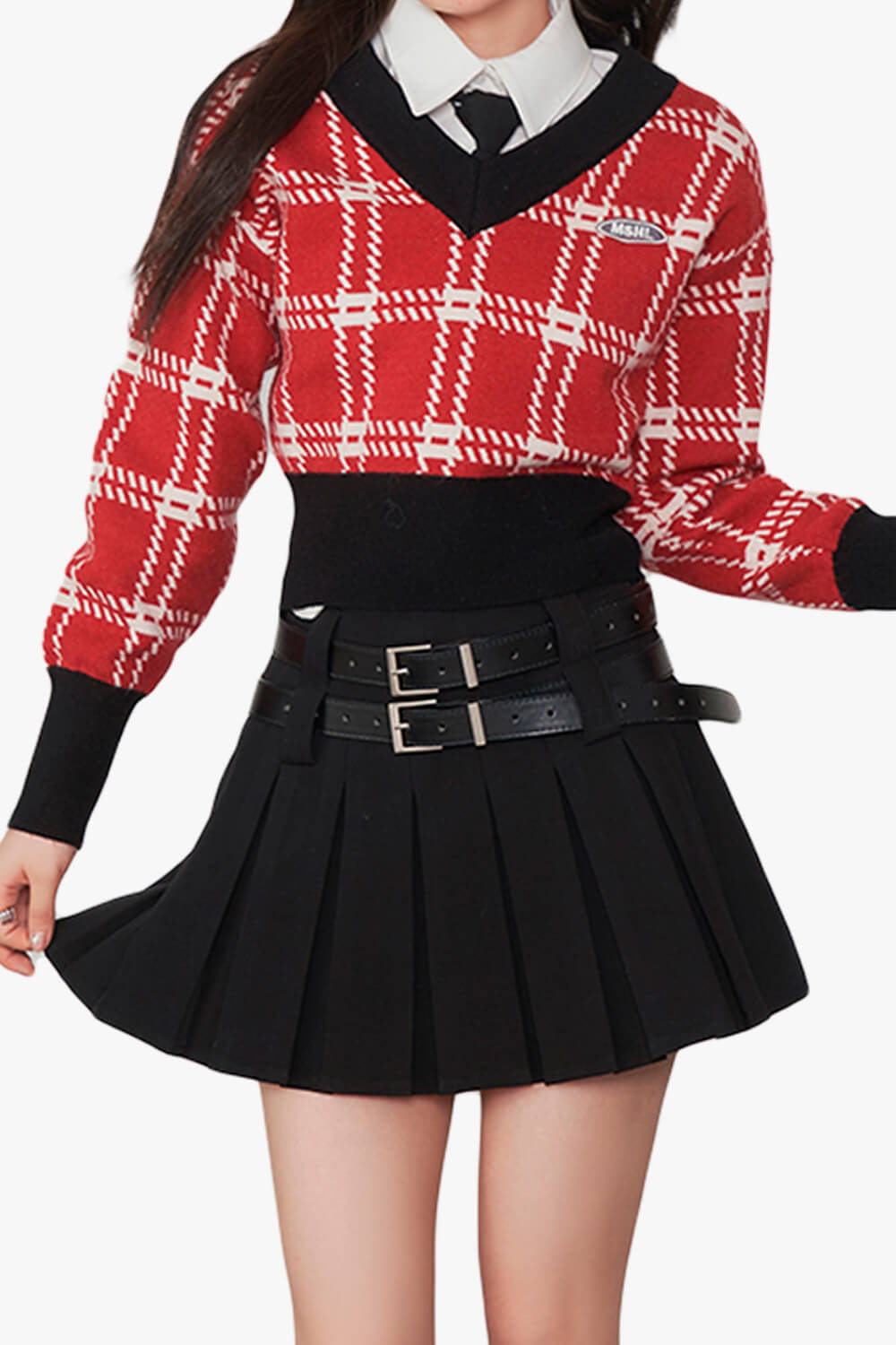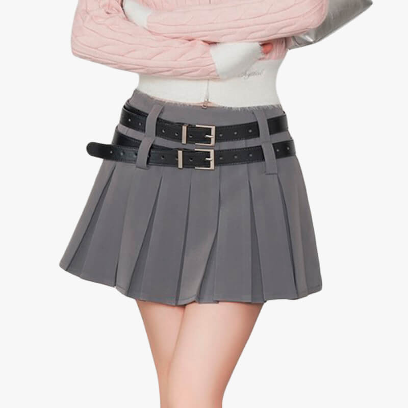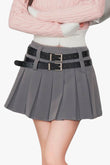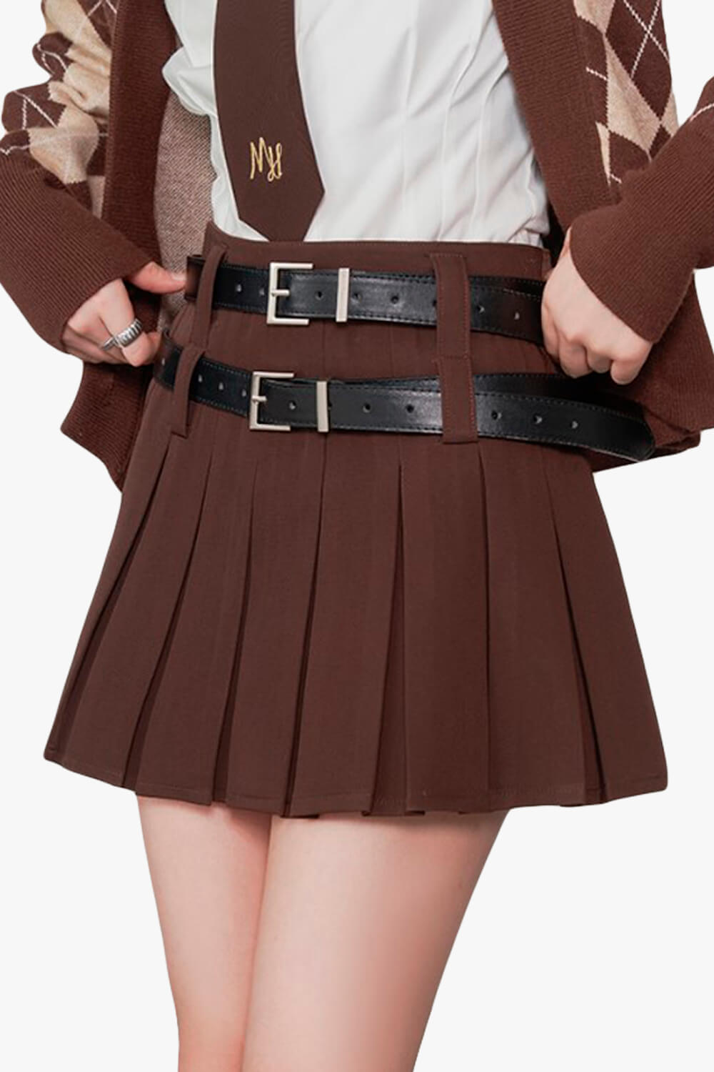 Schoolgirl Aesthetic Double Belt Pleated Skirt