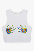 Thermal Hands Aesthetic Crop Top in White Color for Cyber Y2K Aesthetic and Euphoria Outfits. Nice for Rave, Heatwave, Party Kei, Queercore, Nymph.