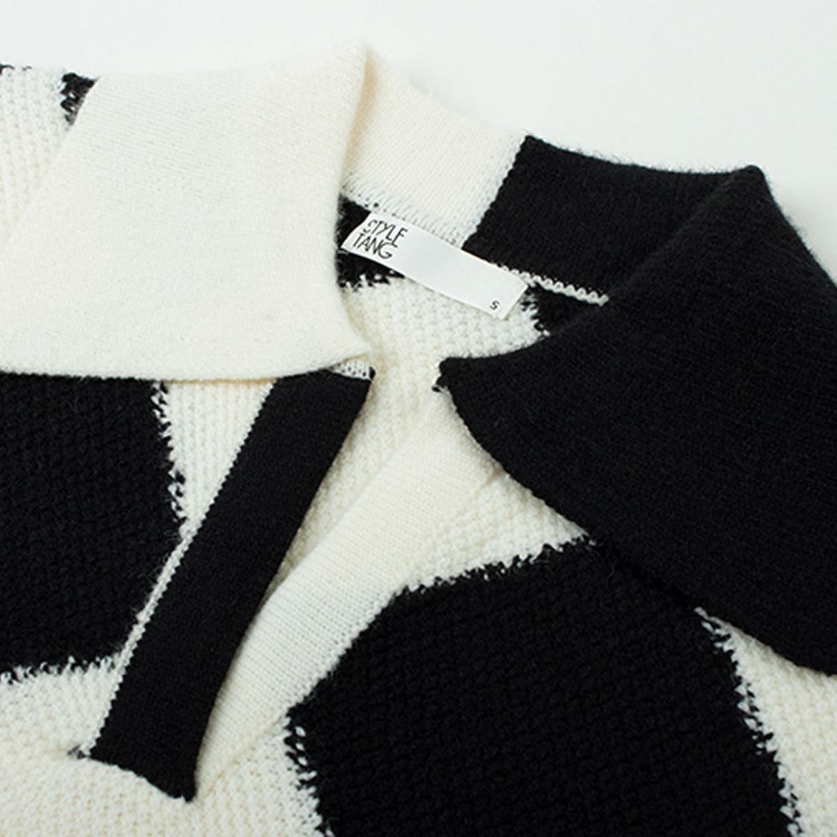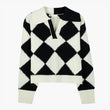 Diamond Pattern Asymmetric Collar Sweater in Black and White color for Baddie Aesthetic and Artsy Outfits. Looks good for Boujee, French Girl style, and Pop Art.