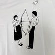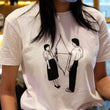Marina Abramovic and The Arrow T-Shirt in White color for Artsy Aesthetic and Weirdcore Outfits. Looks good for Palewave, Traumacore Aesthetic, and Anxiety Outfits.
