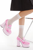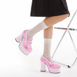 Pink Plaid Goddess Platform Heel Shoes in Pastel Pink color for Babygirls and Soft Girl Outfits. Looks good for Dollcore Aesthetic, Decora, Queercore, and Pastel Grunge.