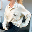 Baby on Fire Long Sleeve Polo Shirt in Beige color for 90s Aesthetic and Baddies. Looks good for Bohemian style, Coconut Girl Aesthetic, French Girl, and Normcore.