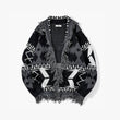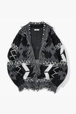 Black Gray Geometrical Comfy Knitted Cardigan