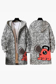 Chainsaw Man Pochita Long Hoodie Jacket in Gray and Orange Color For Anime Aesthetic, Chainsaw Man Merch, and Manga Clothes.