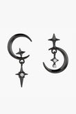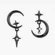 Star and Crescent Moon Earrings in Black color for Celestial Aesthetic and Gothcore Outfits. Looks good for EGirl Aesthetic, Lunarpunk, Witch Aesthetic, and Art Academia.