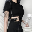 This crop top is our gothic/metal fashion take on the classic black crop top. Bold yet subtle. That’s the art of fashion. It's a simple side chain that adds an element of rock to your outfit. A dramatic statement piece that is sure to get everyone's attention, it will look good on every body type.