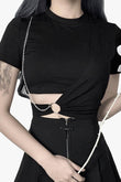 Side Chain Black Soft Goth Crop Top in Black color for Dark Nymph and EGirl Outfits. Looks good for Alt Girl Aesthetic, Emo Aesthetic, Goth Outfits, and Witch House.