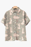 Cute Rabbits Artsy School Girl Shirt in Pale Green color for Babycore and Cute Outfits. Looks good for Cartooncore, Harajuku fashion, Kawaii Aesthetic, and Softie Outfits.
