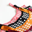 Short Knitted Plaid Crop Top Heart Buttons in Black, Orange, Pink, and Burgundy color for Jamcore and Softie Outfits. Looks good for 80s Aesthetic, Diner, and Retro style.