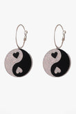 Yin Yang Heart Dots Earrings in Black and White color for Alt Girls and EGirl Outfits. Looks good for 90s Aesthetic, Angura Kei, TikTok Outfits, and Euphoria style.