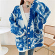 Buy Blue Waves Retro Cardigan Split Color Design with Free Shipping in United States and Worldwide! 5% OFF with 5OFFALL. FREE Aesthetic Gift for Customers.