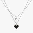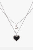 Pixel Heart Double Chain Necklace in Black color for Y2K girls and EGirl Outfits. Looks good for Webcore Aesthetic, Bubble Goth, TikTok Outfits, and Geek Aesthetic style.